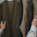 - Fermetures d’époque : Les fermetures éclair portent souvent la marque du fabricant (YKK, Talon) avec des curseurs en métal patiné. Les boucles métalliques montrent une usure cohérente.